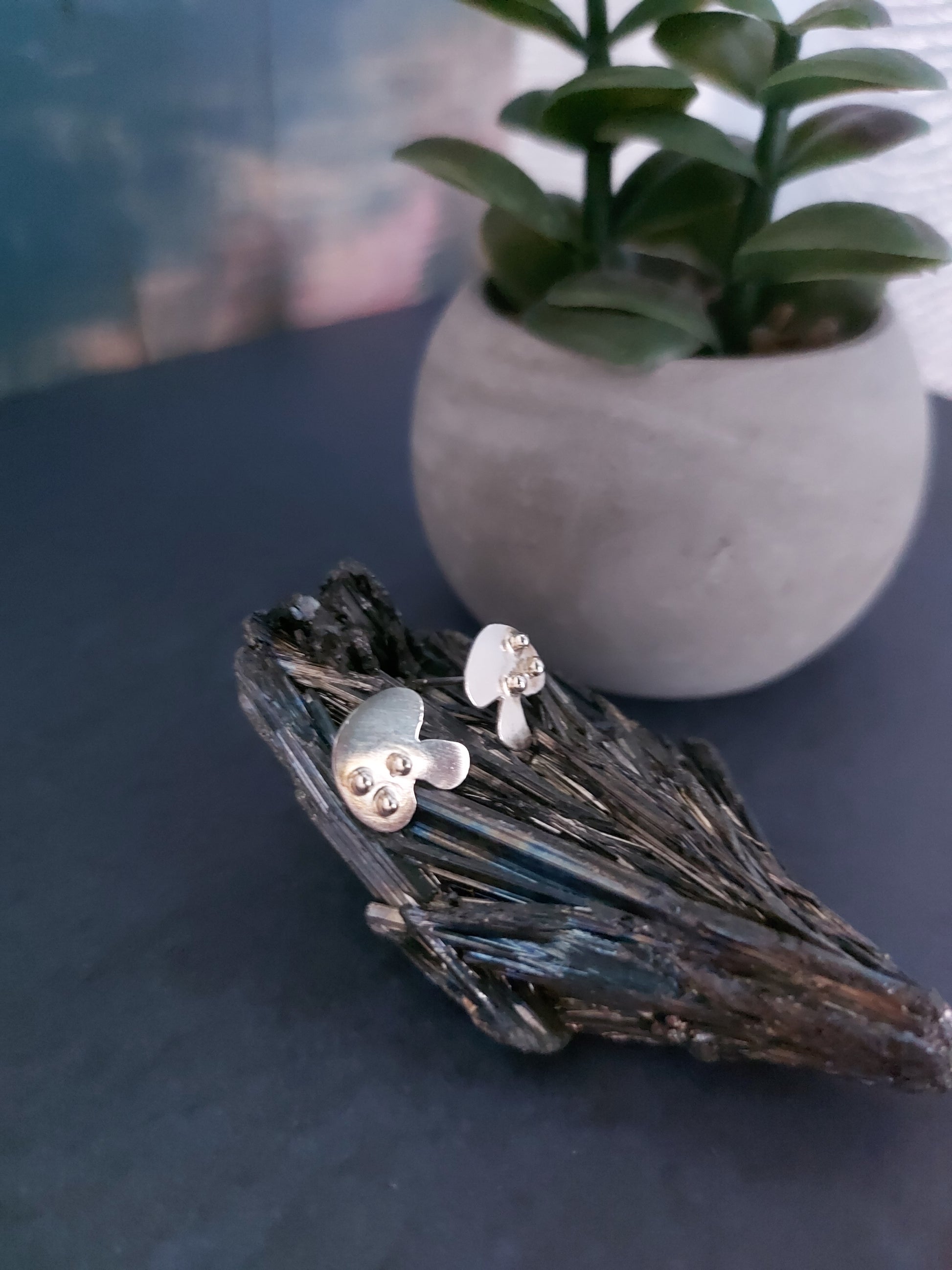 Embrace an enchanting woodland aesthetic with these delicate mushroom earrings. Handcrafted from sterling silver, they bring a refined touch of nature-inspired elegance to any ensemble. Perfect for those who appreciate subtle, whimsical details that celebrate the magic of the forest.